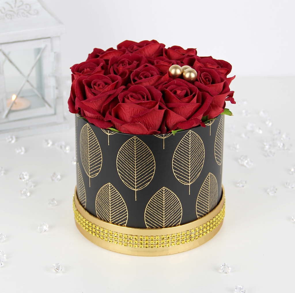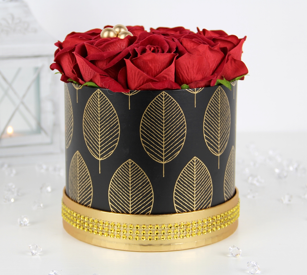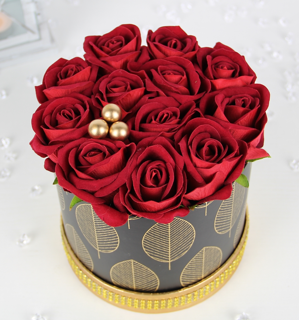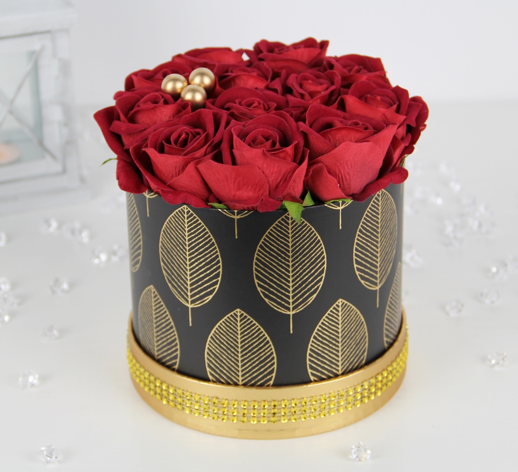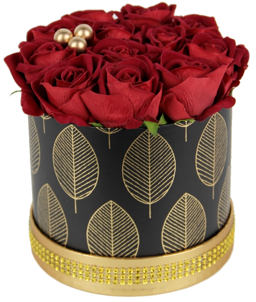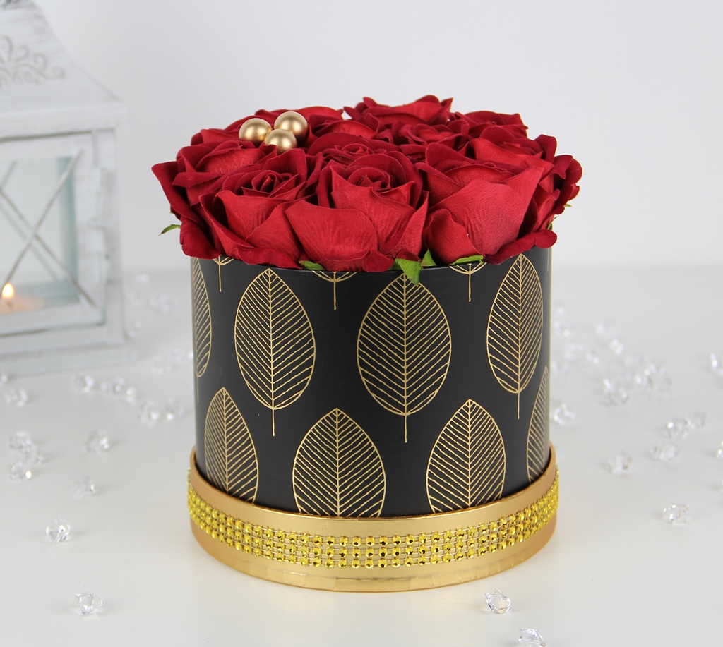 Piękny bukiet w ELEGANCKIM czarno - złotym pudełku, z RÓŻAMI premium - JAK ŻYWE, które są delikatnie i przyjemne w dotyku, a w dodatku długo będą cieszyć każde oko ;)