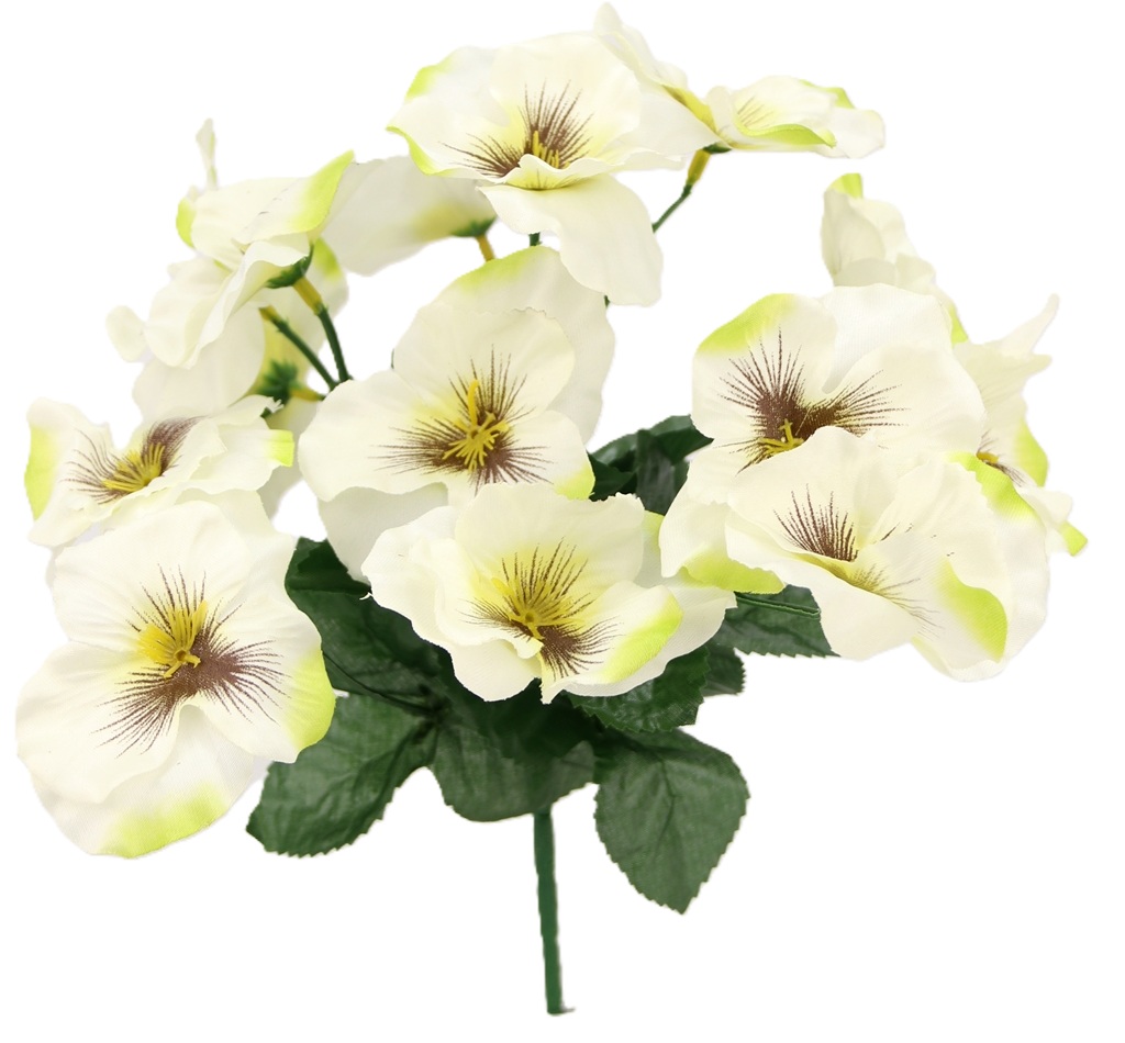 BUKIET sztucznych BRATKÓW - 14x kwiatków w cieniowanej BIELI