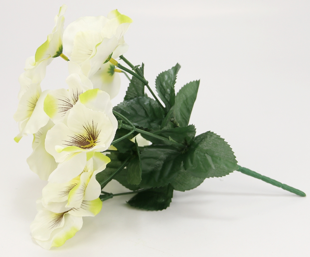 Strona główna » WIOSNA - Wielkanoc » Bukiet BRATKI BIAŁE sztuczne satynowe z listkami 14x kwiatków Wys.24cm