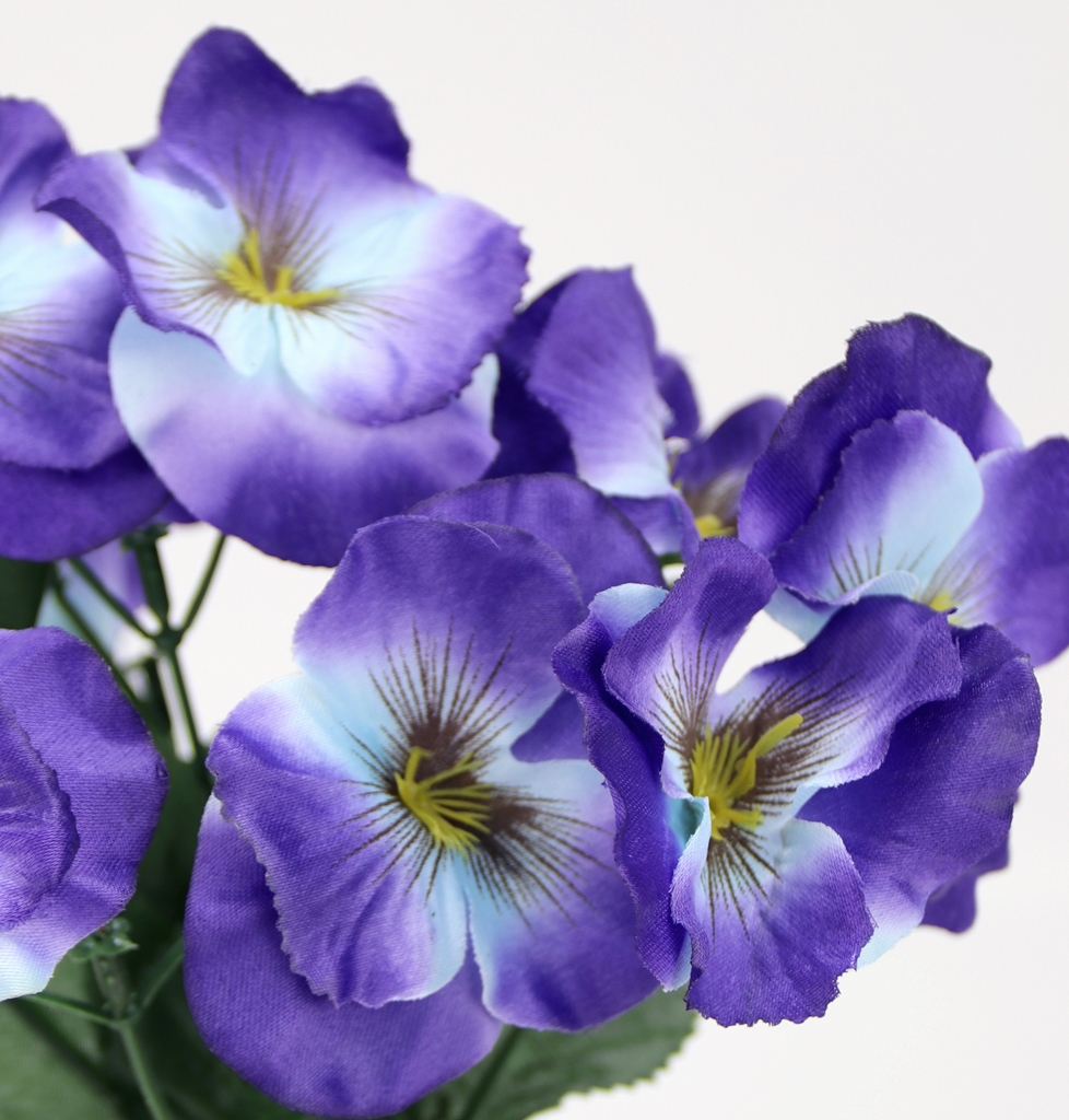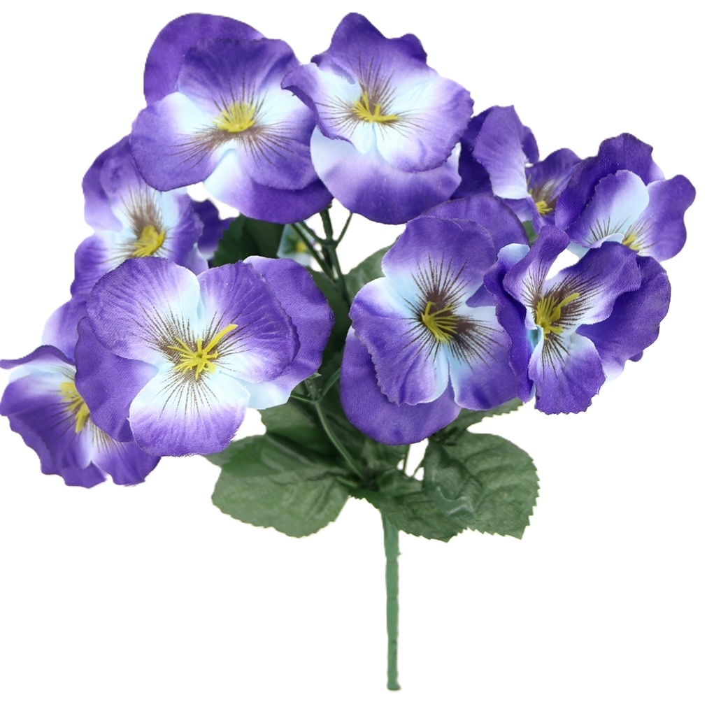 BUKIET sztucznych BRATKÓW - 14x kwiatków w cieniowanym NIEBIESKIM kolorze