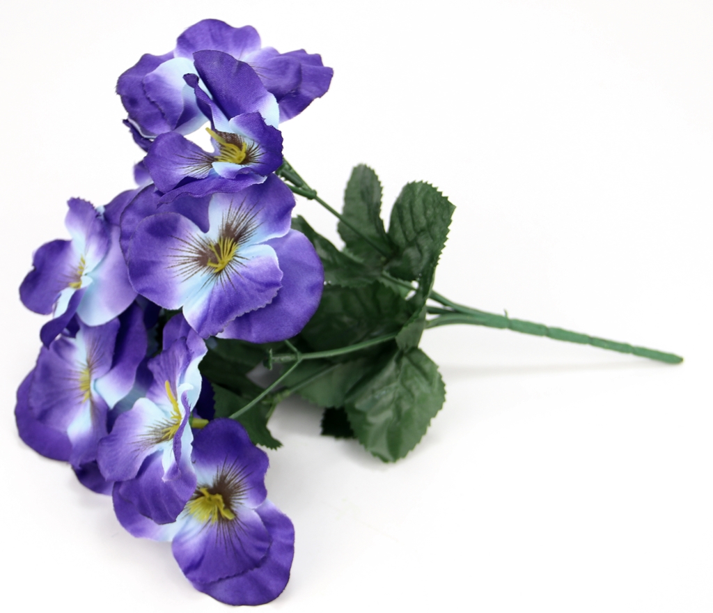 Strona główna » WIOSNA - Wielkanoc » Bukiet BRATKI NIEBIESKIE sztuczne satynowe z listkami 14x kwiatków Wys.24cm