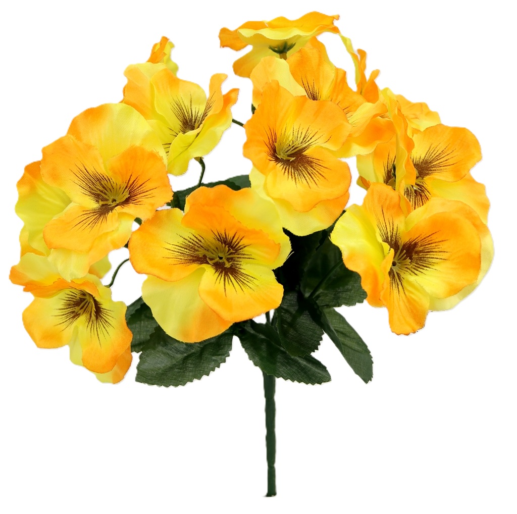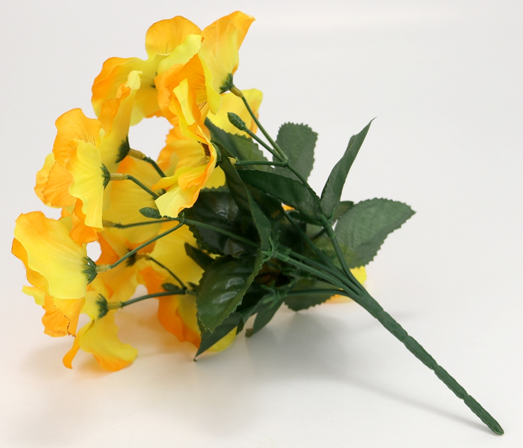 BUKIET sztucznych BRATKÓW - 14x kwiatków w cieniowanym ŻÓŁTYM kolorze