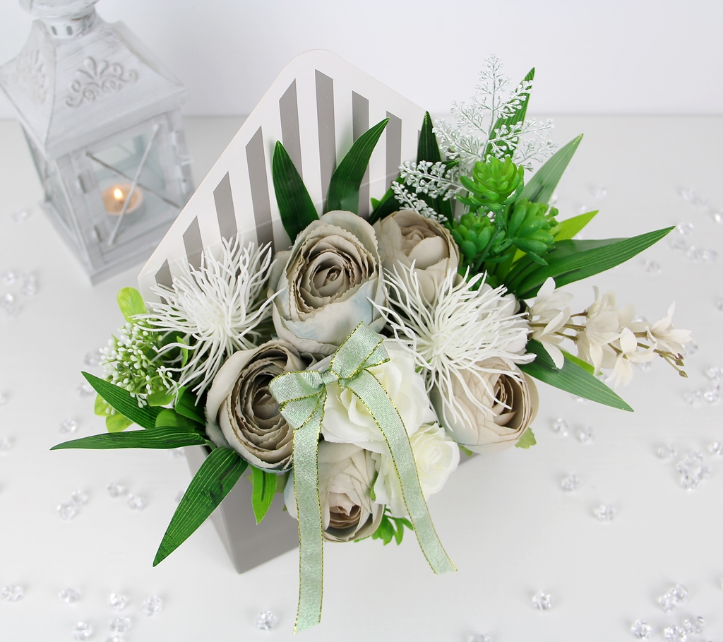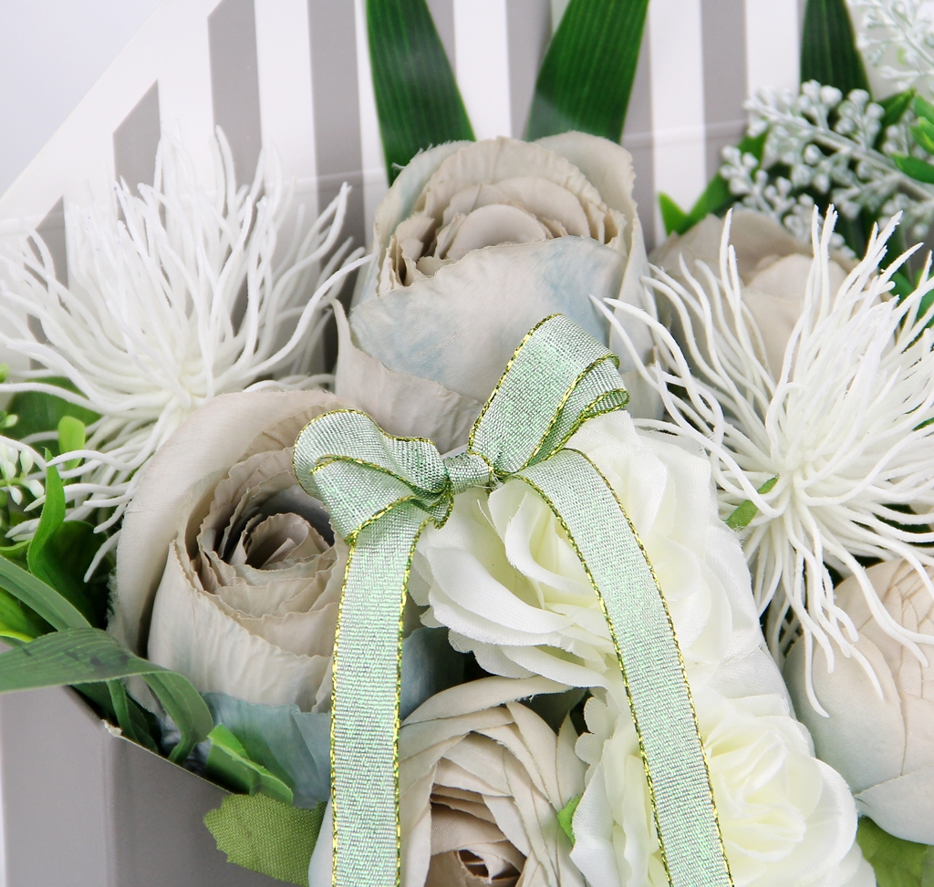 Dzięki użyciu wysokiej jakości kwiatów z materiału, długo będziesz się cieszyć ich urokiem. W przeciwieństwie do żywych kwiatów, te nie zwiędną i nie wymagają pielęgnacji. Box posłuży na długo!