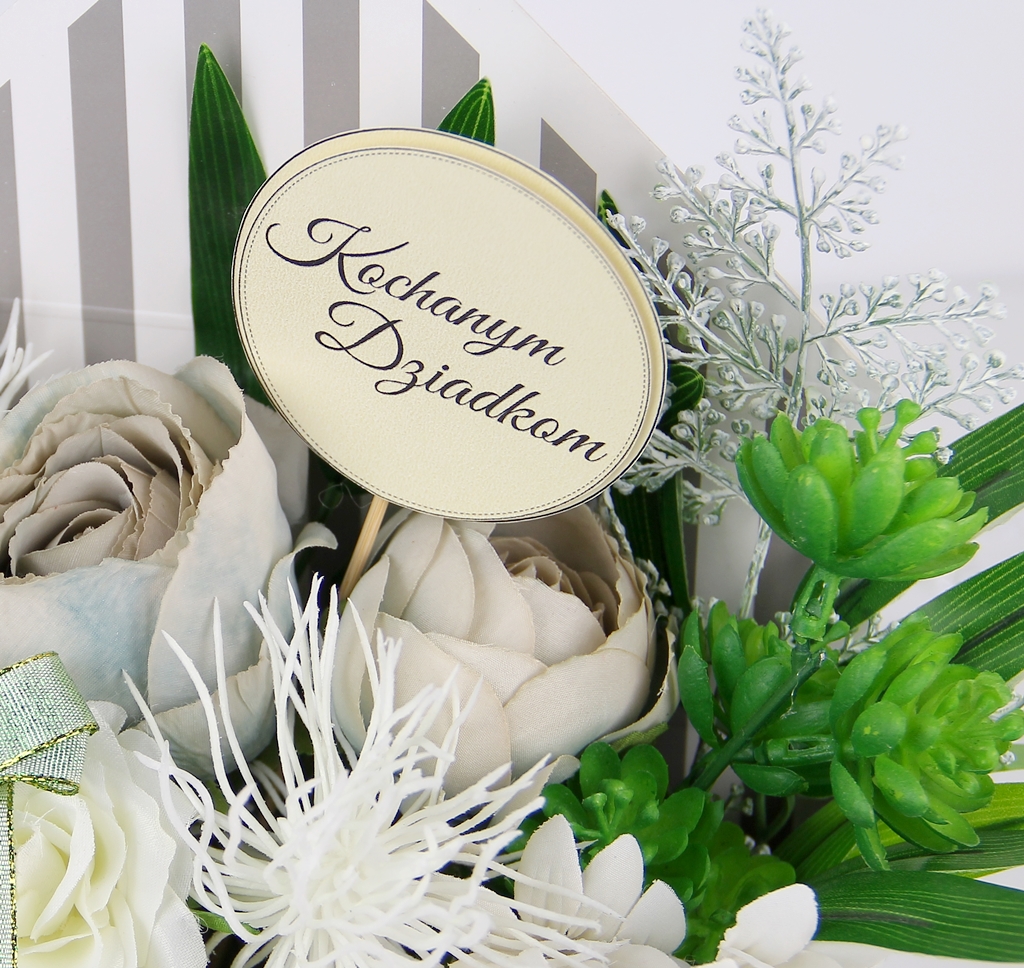 Bukiet składa się z wysokiej jakości kwiatów materiałowych: