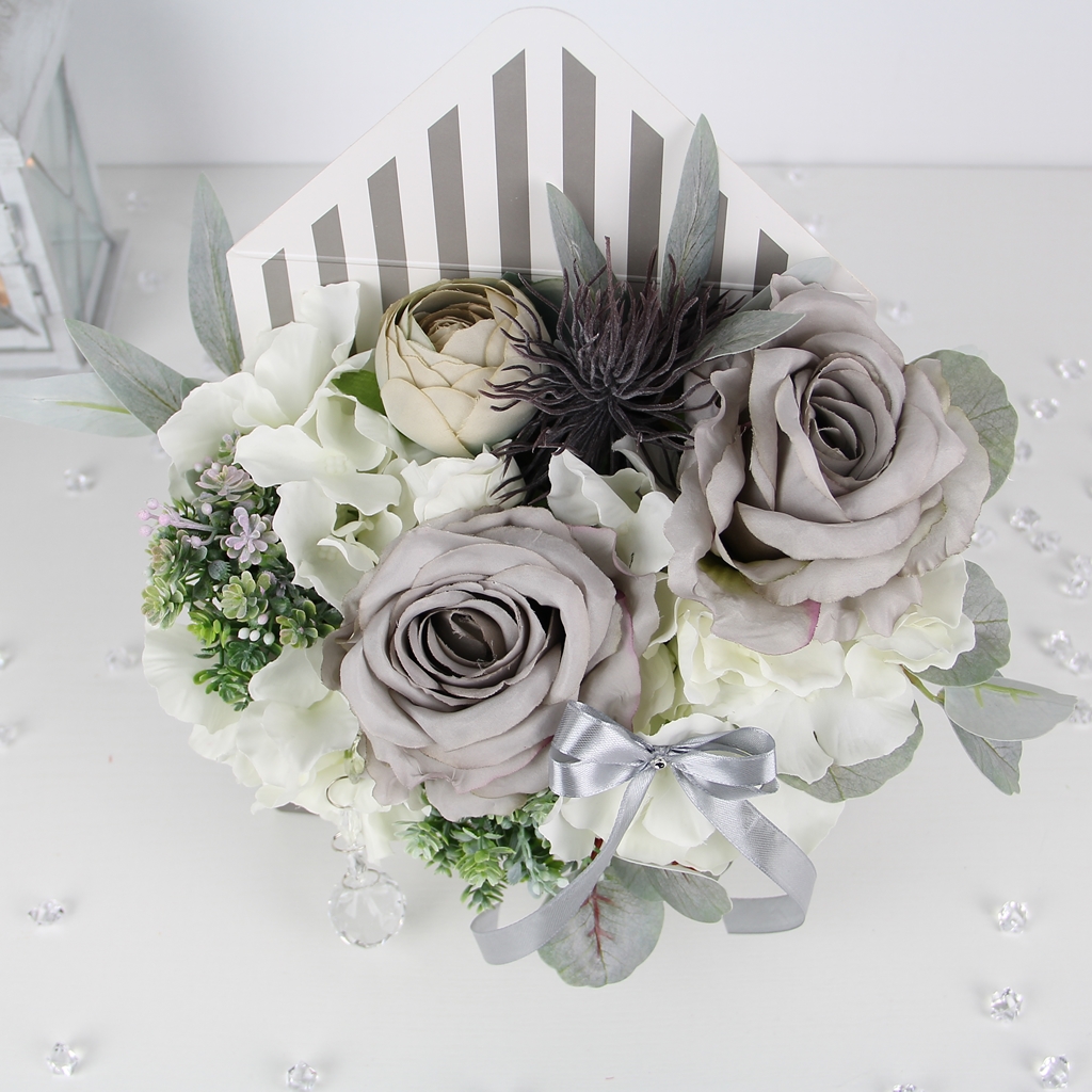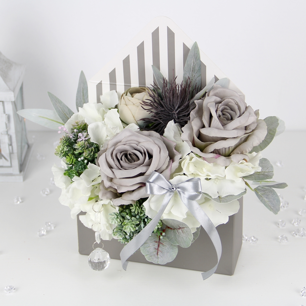 Dzięki użyciu wysokiej jakości kwiatów z materiału, długo będziesz się cieszyć ich urokiem. W przeciwieństwie do żywych kwiatów, te nie zwiędną i nie wymagają pielęgnacji. Box posłuży na długo!