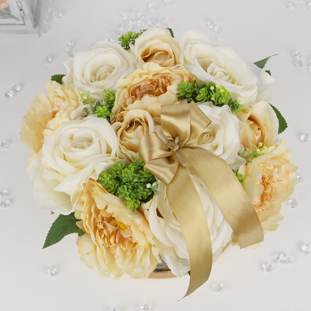 Kwiaty dobieramy kolorystycznie z najwyższą starannością - tylko te wysokiej jakości tkaninowe - miękkie i przyjemne w dotyku. Łudząco podobne do naturalnych kwiatów!