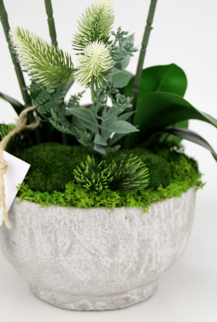 dodatkowo daliśmy mix ozdobnych, sztucznych listków - łodyżek oraz sztuczne kamienie mszak,