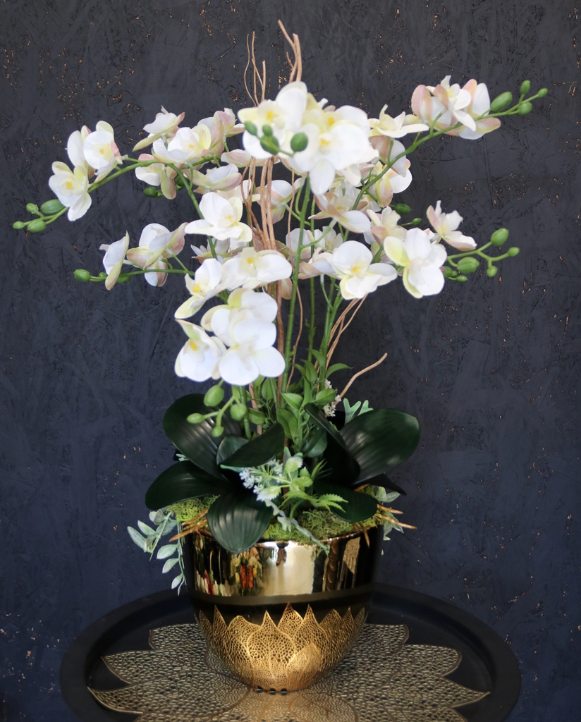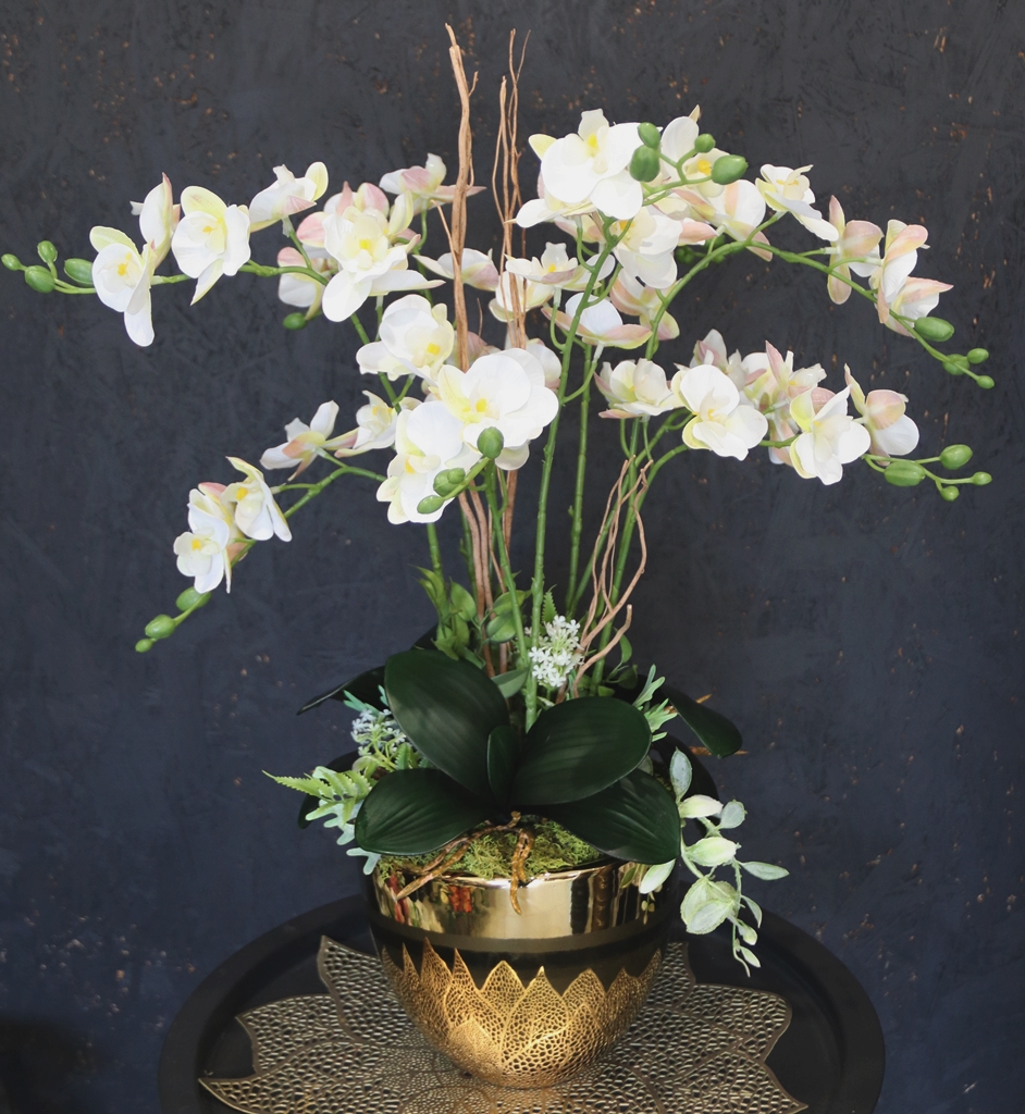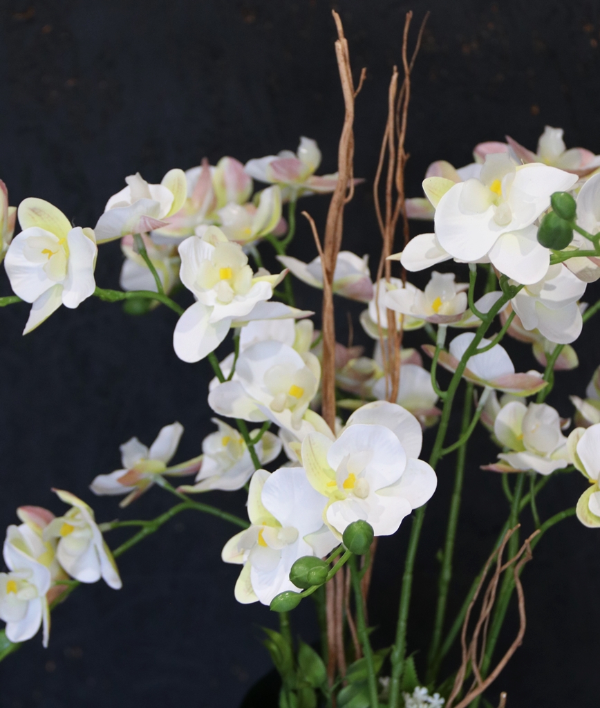 Bardzo elegancka DUŻA, ponadczasowa dekoracja ze sztucznych storczyków premium. Nie wymaga podlewania, nawożenia, pięknie się prezentuje na żywo. Idealne rozwiązanie jeżeli chcesz mieć zawsze kwitnącego stoczyka! Kompozycja nadaje się jako ozdoba do domu, biura, recepcji, poczekalni, sprawdzi się też jako wyjątkowy prezent.