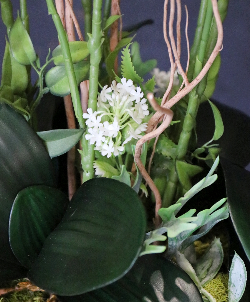 - u dołu są piękne, naturalnie wyglądające zielone liście z wysokiej jakości gumy piankowej, wraz z imitacją korzonków,