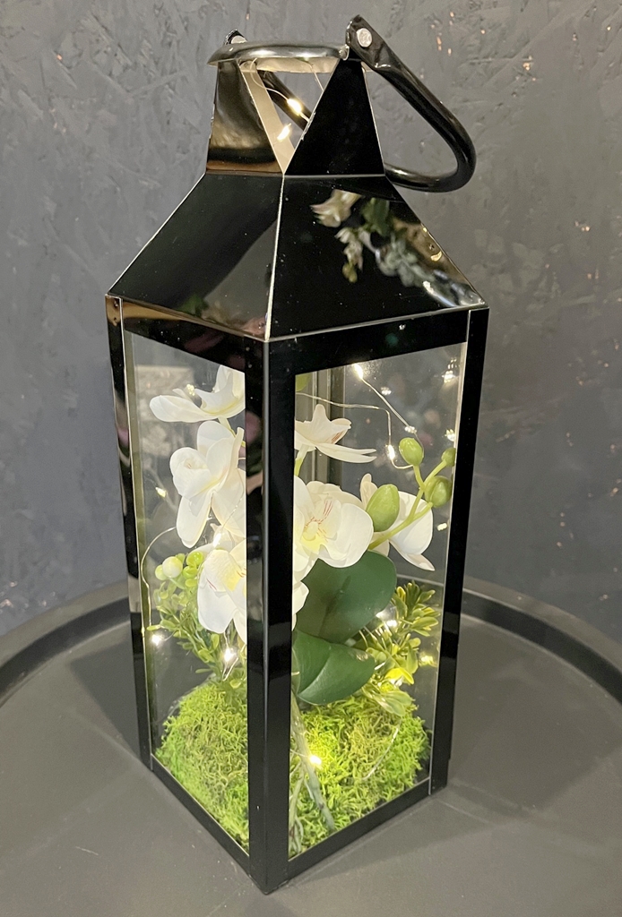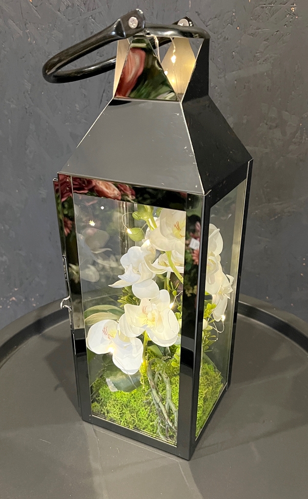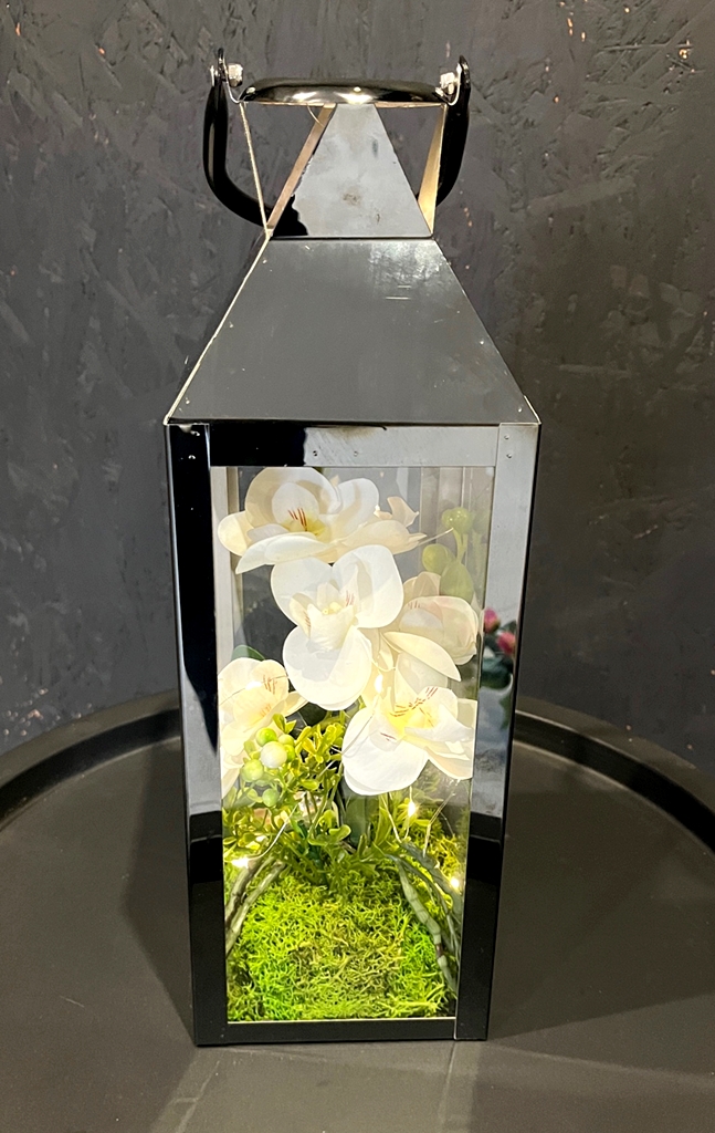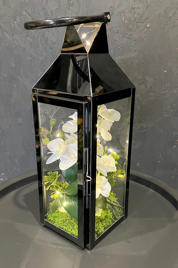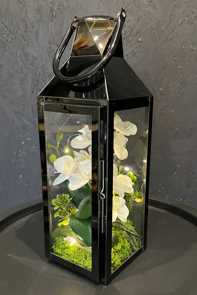 Niezwykłe połączenie klasycznego lampionu - latarenki z kwiatami storczyka oraz lampkami LED - to nasza propozycja dla Ciebie!
