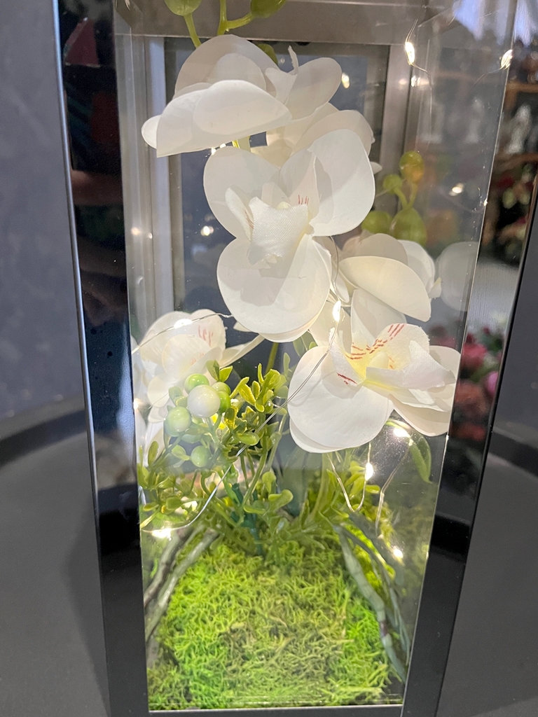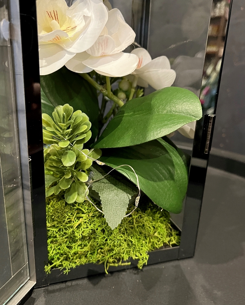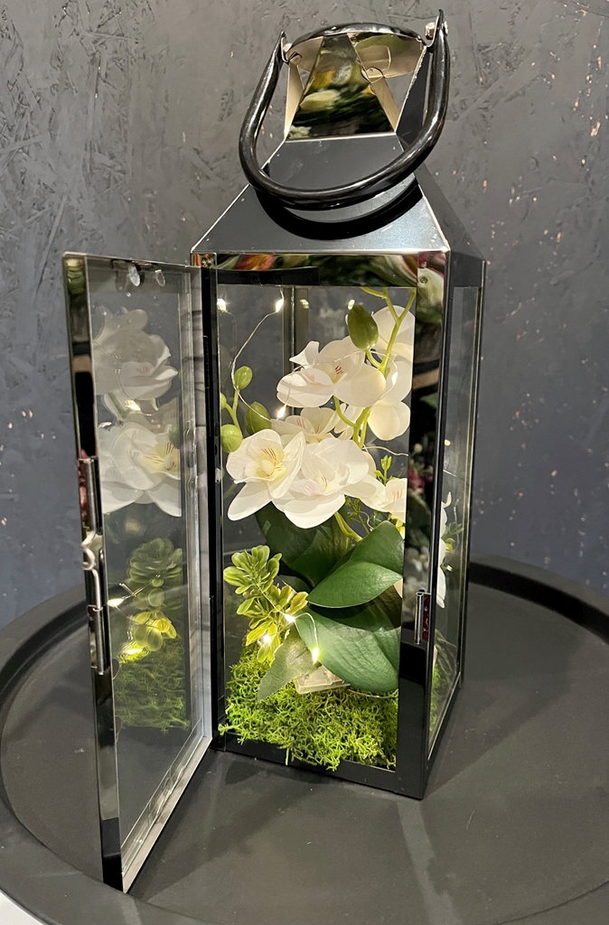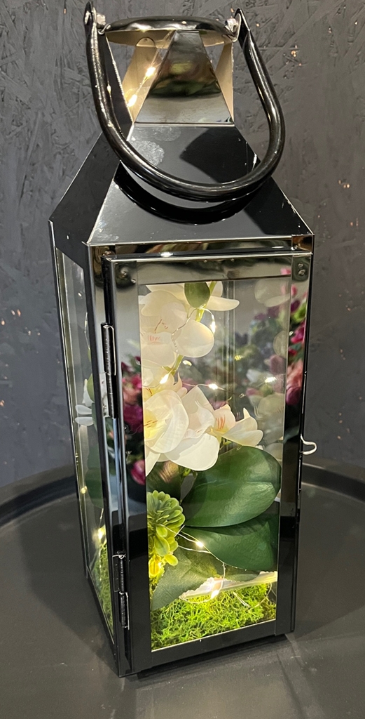 Niezwykłe połączenie klasycznego lampionu - latarenki z kwiatami storczyka oraz lampkami LED - to nasza propozycja dla Ciebie!