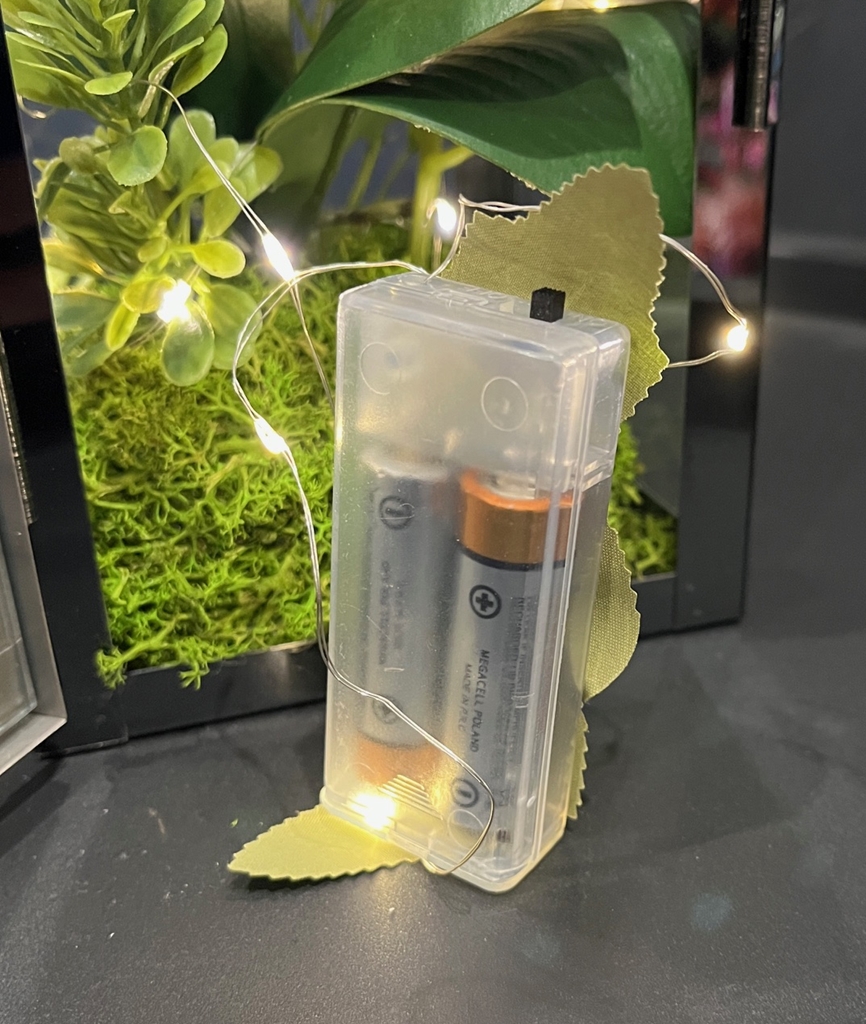 - w komplecie 2x baterie AA, puszka dodatkowo "zamaskowana" sztucznymi zielonymi listkami..