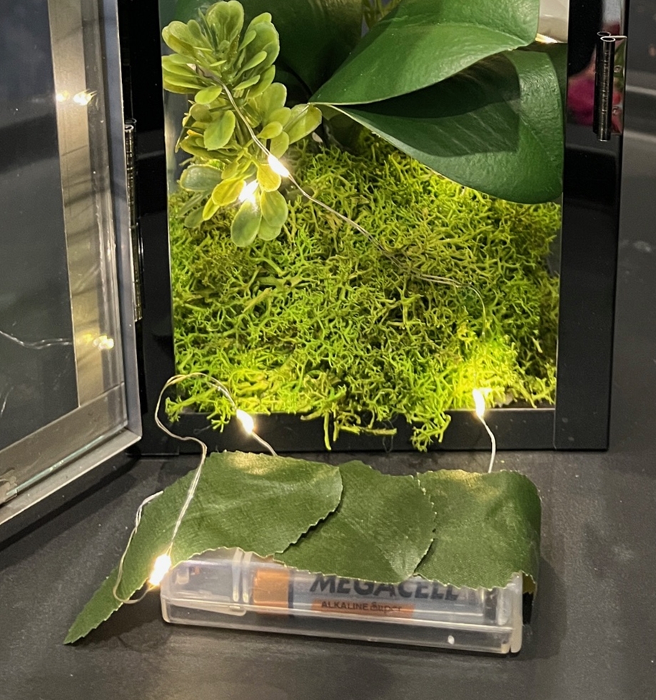 - całość podświetlają lampki LED typ SMD umieszczone na druciku, 20x diod o barwie białej neutralnej, jasno świecą,