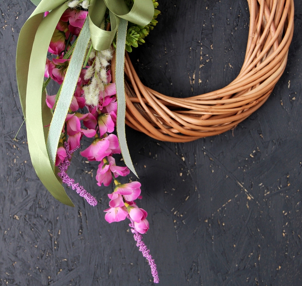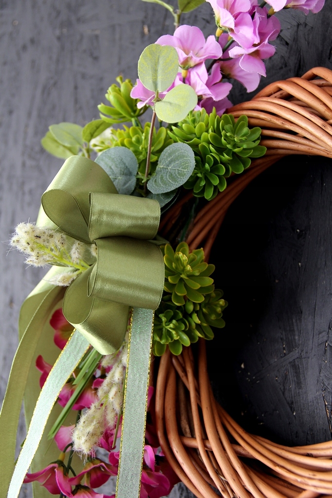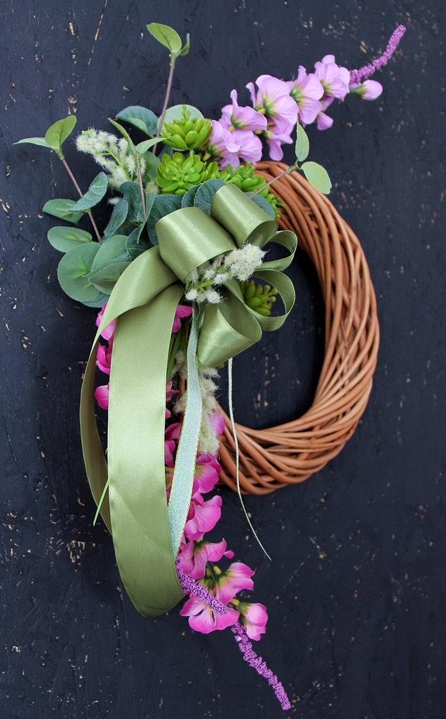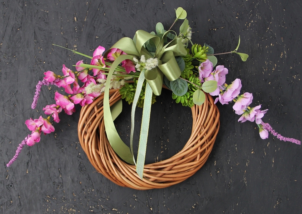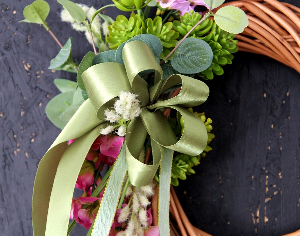 Wianek jest uniwersalny, można go powiesić w dowolnej pozycji, kokardkę można wtedy odpowiednio przekręcić.