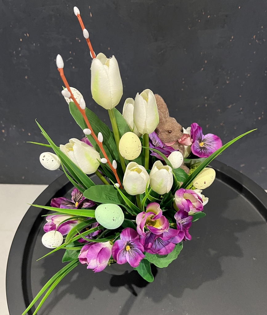 Ze względu na gabaryty w paczce znajduje się 1 lub max 2 kompozycje, tudzież komplet - wiązanka + "wazon". Jest to uwarunkowane narzuconymi maksymalnymi wielkościami paczek przez firmy kurierskie.