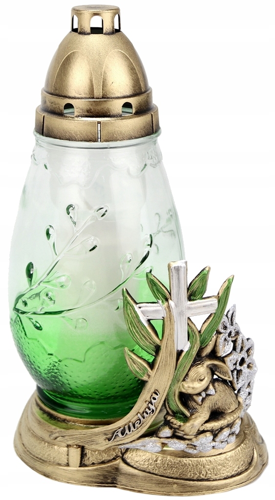 ZNICZ na Wielkanoc JAJO dekoracją obok, ZIELONE szkło 50h