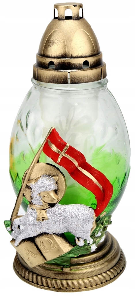 ZNICZ na Wielkanoc średnie JAJO z BARANKIEM zielone szkło Marka inna